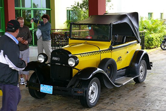 Vom Hotel aus kann man entweder mit einer kleinen Bimmelbahn (5 CUC pro Person und Strecke), mit einem Taxi (die gleiche Strecke für 5 CUC) oder mit dem Varadero Beachbus (5 CUC Tagesticket) fahren. Die Bimmelbahn ist also völlig überteuert. Aber es gibt ja genug Touristen ;-). Wir sind auch einmal drauf reingefallen. Apropos CUC: Kuba hat zwei Währungen. Zum einen den normalen Peso, der aber nur an Einheimische ausgegeben wird und mit dem man nur einige Grundbedürfnisse decken kann. Dann gibt es noch den Peso convertible (CUC), der einem alles übrige zugänglich macht. Der Umrechnungskurs betrug ungefähr 1 € zu 1,2 CUC. Mit Kreditkarte zu zahlen statt bar, rechnete sich, obwohl dazu zunächst CUC in US Dollar umgerechtet und dann von der Kreditkartenfirma wieder in € in Rechnung gestellt wurde. Der derzeitig günstige Umrechnungskurs von € zu $ machte es möglich. Das gilt natürlich nicht für 6 CUC für eine Taxifahrt, sondern nur bei größeren Beträgen, wie z.B. unsere Ausflüge in Stadt und Land.