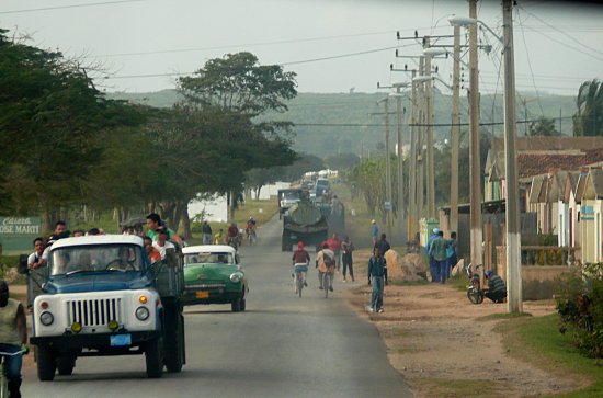 Da Kuba immer noch große Lücken im öffentlichen Transportwesen aufweist, sind Fahrer von staatlichen und sonstigen öffentlichen Fahrzeugen (erkennbar an der Farbe der Kennzeichen) verpflichtet, so viele Leute mitzunehmen, wie reinpassen. Um das zu ordnen und sicherzustellen gibt es staatliche Inspektoren in gelben Uniformen, die die Wartenden an die Fahrzeuge verteilen. Das ist der Grund, warum, wie oben zu sehen, an manchen Stellen Menschentrauben am Straßenrand stehen.