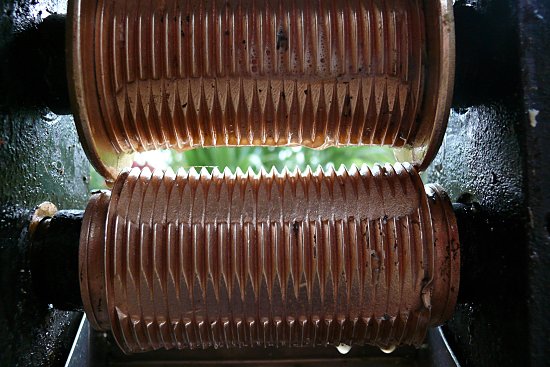 In der Mittagspause gab es wieder frische Drinks. Hier das Presswerk der Zuckerrohrpresse von nahem.