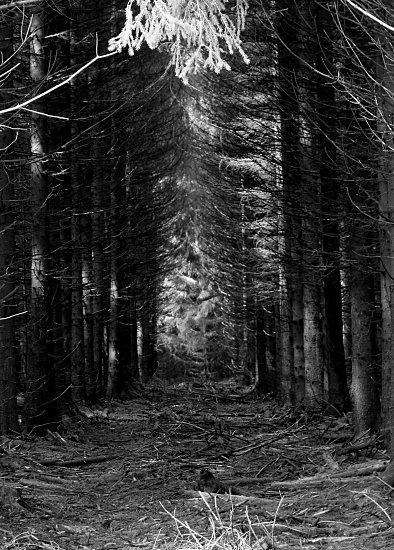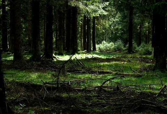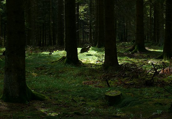 Wechselnde Bewölkung zaubert Lichtflecken in den Wald