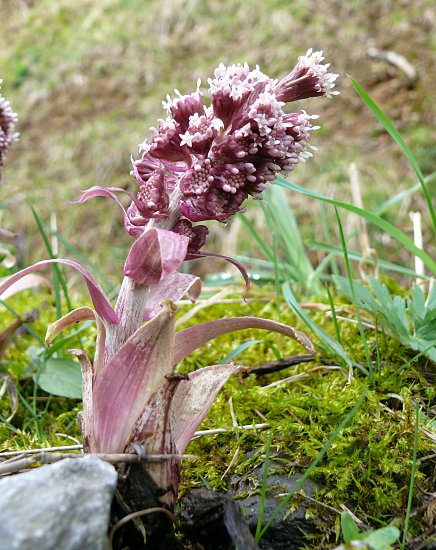 Gewöhnliche Pestwurz (Petasites hybridus, Syn. Petasites officinalis), auch Bach-Pestwurz oder Rote Pestwurz