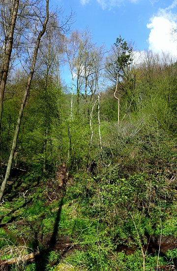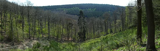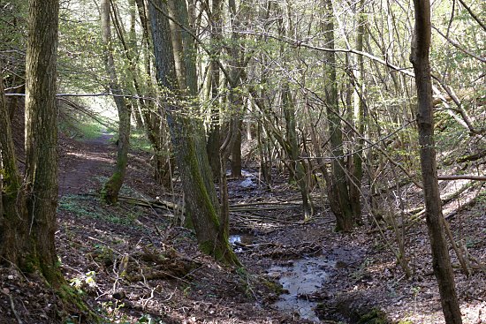 Wenn man fast zeitgleich in Köln und Bonn, in der Zülpicher Bucht und hier oben im Eifeler Höhengebiet ist, fällt einem der große Unterschied auf, wie weit bzw. nicht weit die Vegetation ist. Während direkt am Rhein schon alles grün ist und in der Gegend von Zülpich und Euskirchen die Buchen immerhin schon ihr charakteristisches helles, frisches Junggrün tragen, ist es hier oben im Nationalpark noch relativ kahl. Das gilt für die Buchen (Eichen sind ohnehin etwas später dran) ebenso wie für viele Blumen. So findet man hier nur vereinzelt Sternmieren und Sauerklee, während weiter unten schon die volle Blüte zu Gange ist. Es macht sich halt bemerkbar, das es vom Rhein hin zur Hocheifel etwa 40 Vegetationstage weniger gibt..