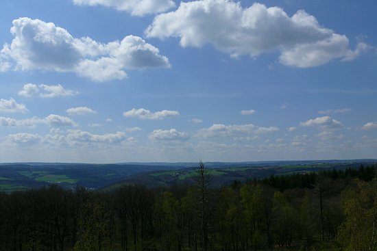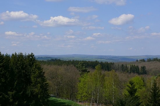 Von oben hat man eine grandiose Aussicht. Links ist das Urfttal und Schleiden, am rechten Rand liegt Herhahn.