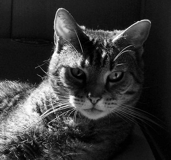 Im Nationalpark leben mindestens 50 Wildkatzen, was man anhand von Fotofallen feststellen konnte. Damit gibt es hier eine der größten Populationen in Europa. Leider sind die Katzen nachtaktiv und vor allem sehr scheu. Zu erkennen sind sie anhand der Größe (etwa 1/3 größer als Hauskatzen), der fleischfarbenen Nase, dem getigerten, aber wenig konturierten Fell, einem sehr kurzen Schwanz und meist einem hellen Kehlfleck. Dazu kommt oft ein dunkler Rückenstrich. Das hier ist zugegebenermaßen eine Hauskatze, nämlich unsere Chelsea, die aber von der Zeichnung und vor allem von der für Hauskatzen ausgesprochen seltenen fleischfarbenen Nase eine gewisse Ähnlichkeit zu Wildkatzen aufweist.