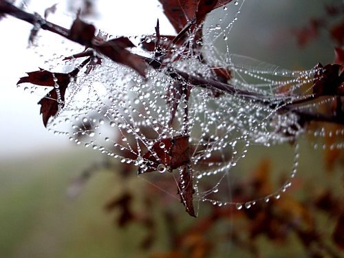 Immer wieder bieten sich die Spinnweben als Motiv an, ja, sie drängen sich geradezu auf.