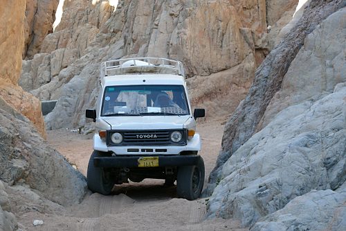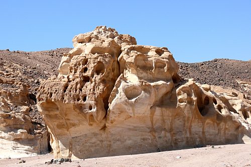 Immer wieder kommt man an ungewöhnlichen Felsformationen vorbei. Und immer wieder stößt man auf Spuren von Wassererosion. Auch die Wadis, durch die wir gefahren sind, entstanden durch fließendes Wasser. Auch seltener Regen formt die gesamte Landschaft.