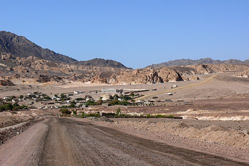 Eine Oase. Bir el irgendwas. Übersetzt etwa "Kleiner Brunnen". Das Dorf besitzt eine große Schule, obwohl wegen der Landflucht nur 5 oder 6 Kinder unterrichtet werden.