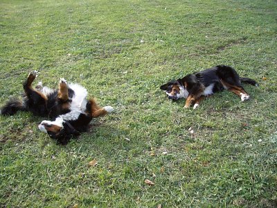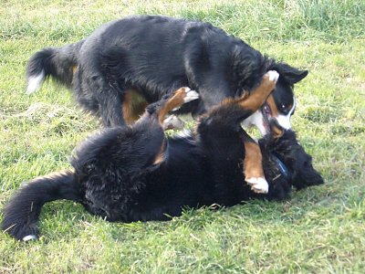 Mit dieser Digitalkamera kann ich endlich auch meine Hunde fotografieren, während sie sich heftig balgen (ist aber nur Spiel). Damit bin ich endlich ähnlich schnell wie mit einer Spiegelreflex oder "normalen" Sucherkamera. |