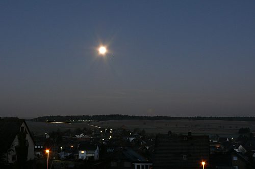 Hier Kirchheim bei Nacht mit Vollmond und Venus.