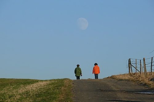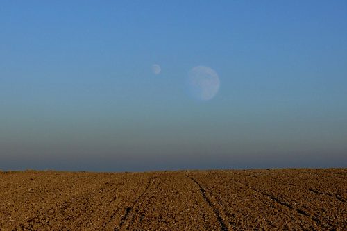 Wenn die Sonne im Rücken steht, sieht man einen sonnigen Tag und zugleich den fast vollen Mond.