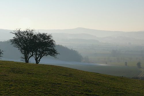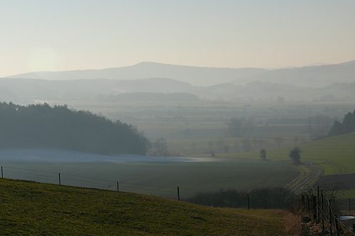 Der Dunst deckt die Landschaft mit einem zarten, düsteren Schleier zu, sobald man sich wieder umdreht.