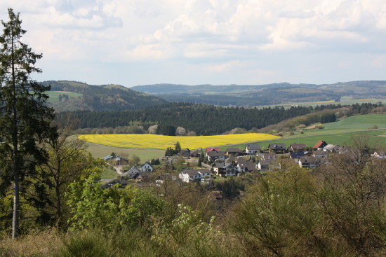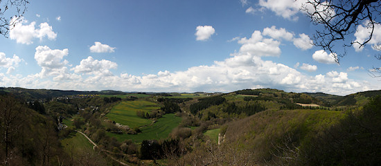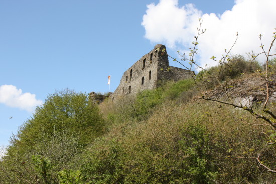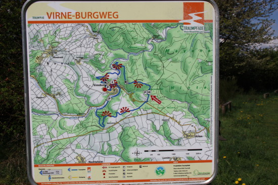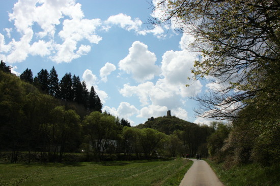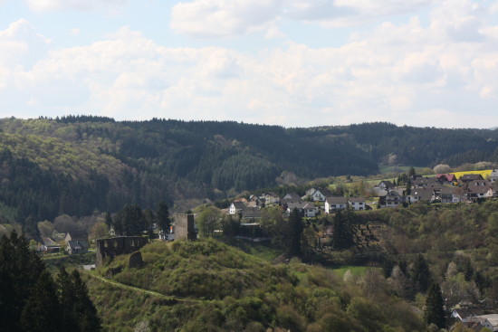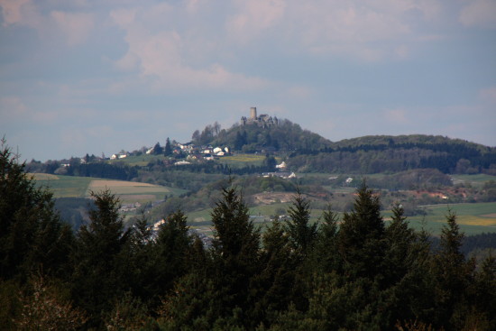 Von dort oben kann man mit einem Fernglas bei guter Sicht einen Blick auf die Nürburg erhaschen.
