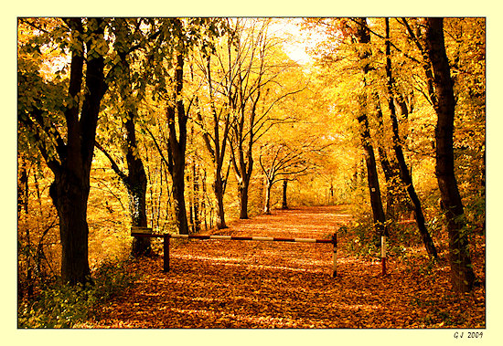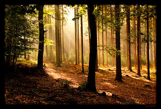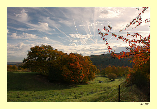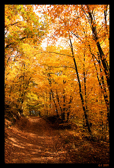 Ende Oktober 2009: Der Wald hat reichlich Farbe bekommen. Leider sind die meisten Tage eher trüb, so dass diese Farbe nur wenig zur Geltung kommt. Aber zum Glück kommt die Sonne dann doch manchmal zum Vorschein.