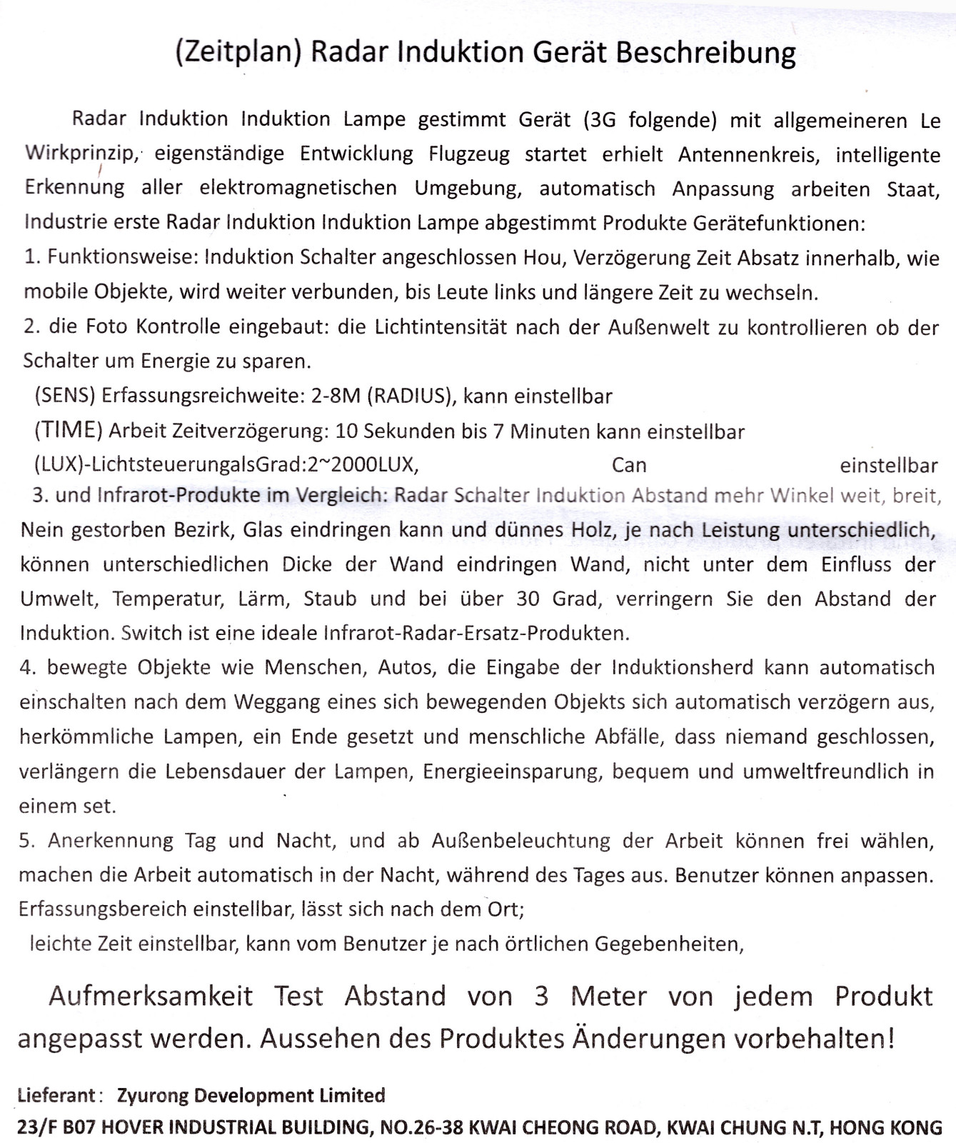 Vom selben Gerät stammt auch die Montageanleitung, die soweit ganz brauchbar ist. Zumindest ist verständlich, was da geschrieben steht. Süß finde ich die Bezeichnung "Querulant" für die stromführende Phase. Im englischsprachigen Abschnitt ist das noch korrekt mit "Live Wire" bezeichnet. Mandarin ist mir nicht geläufig, so dass ich nicht die leiseste Ahnung habe, wie diese "Übersetzung" zustande gekommen sein könnte.