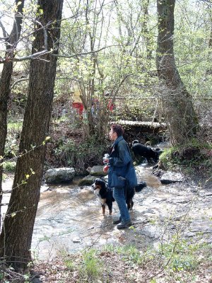 | Nach einem weiteren Stück Weg wurde eine größere Pause eingelegt. Für die Hunde die Gelegenheit, ausgiebig zu plantschen. | ![]() |
