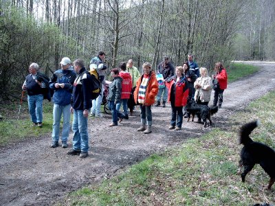 Berits unterwegs bei der ersten Pause. Claudia hat Kuchen dabei, was nicht nur die Neugier der Vierbeiner weckt. |