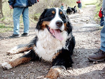 Sandy als Schlammkuh :-) Aber das war ein beliebtes Berner-Outfit an diesem Tag. Nach der Rückkehr konnten sich alle die müden Knochen etwas regenerieren und gleichzeitig etwas gegen Hunger und Durst unternehmen. Es war für Zwei- wie Vierbeiner ein gelungener Tag. Dazu trug auch das Wetter und die von Familie Breuer ausgesuchte schöne Wanderstrecke bei. |