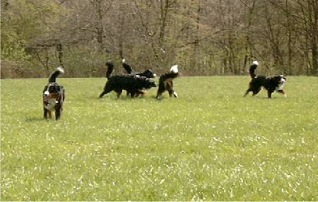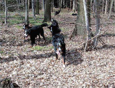 | Kurz nachdem wir ziemlich pünktlich losgezogen sind, konnten sich die Hunde erst mal tüchtig austoben. | ![]() |