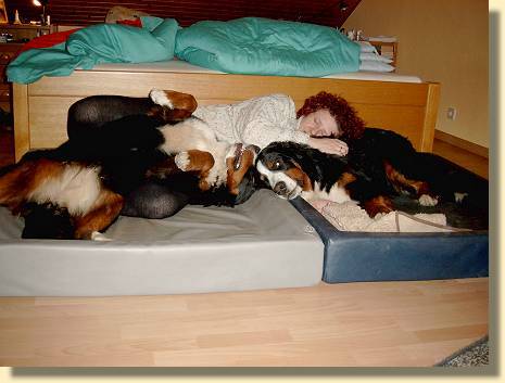 Na ja, endlich wieder zu Hause, waren wir "hundemüde". Na gut, eigentlich hat Herrchen hier etwas geschummelt. Weil Frauchen krank im Bett gelegen hat, war sie ja gar nicht mit bei dem Spaziergang. Aber das Bild passte einfach zu gut hier hin :-))