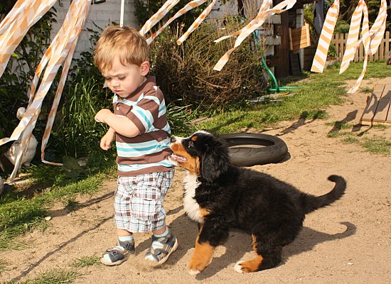 Genug geknuddelt und getrunken. Jetzt wird gespielt, und zwar im Garten.