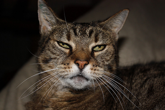 Zusammen mit deiner Schwester Tapsi kamst du aus dem Tierheim zu uns. Während Tapsi sich schnell unter ein Auto geworfen hat und nie wirklich heimisch geworden ist, warst du stets für uns da. Du hast zwei Umzüge problemlos mitgemacht und die Ankunft unseres ersten Hundes Domino souverän weggesteckt. Stets warst du Chefin im Haus, selbst wenn andere Hunde zu Besuch kamen. Dabei warst du nie böse und deine Krallen hast du nie eingesetzt, außer um Mäuse zu fangen. Ständig auf meinem Schoß hast du mir die Ohren voll geschnurrt und dich zufrieden zusammen gerollt. Du hattest ein schönes Katzenleben und einen schönen Lebensabend, aber heute mussten wir dich schweren Herzens gehen lassen.