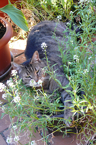 Chelsea 2007 auf dem Balkon mitten im "Gemüse".