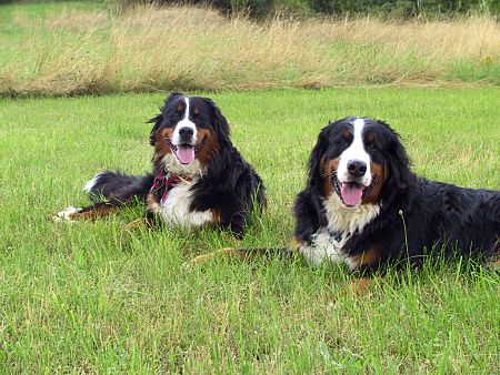 Mitte Juli 2004 musste ich nach einem Defekt eine Kamera testen und habe als Motive (natürlich) unsere beiden Berner Domino und Ginja genommen. Für das Internet ist die Auflösung gut genug.