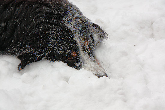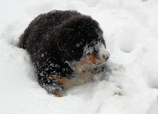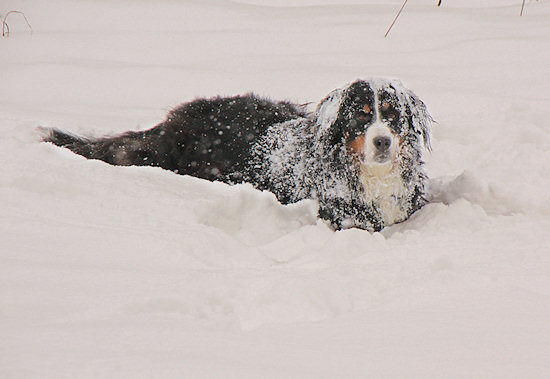 Den Kopf kann auch Camillo in den Schnee schieben.