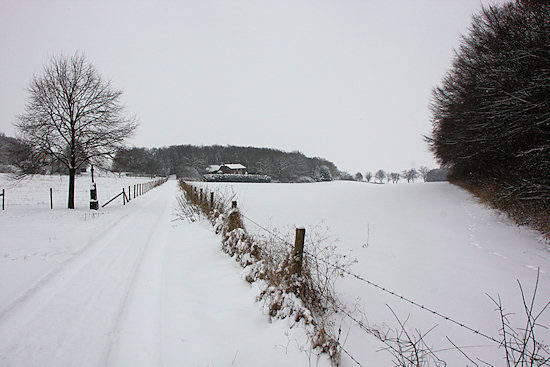 Nach einer angemessenen Ruhepause im Haus ohne überlieferte Zwischenfälle gingen wir dann ein wenig spazieren. Duncan darf ja noch nicht sehr weit gehen, aber da wir quasi am Feldrand wohnen, ist das kein Problem. Nur wenige Meter vom Haus weg beginnt schon das Winterparadies.