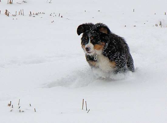 Nach dem Eingraben kam dann der Spurt durch den Schnee.