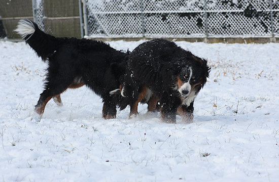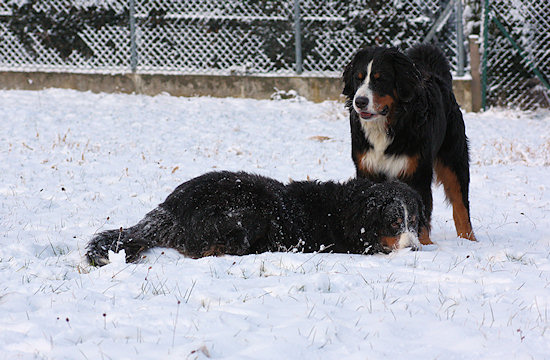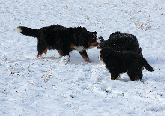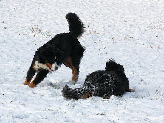 Irgendwie haben die Bernerwald-Jungs wohl die Stofftiermanie ihres Vaters geerbt. Wenn sie nicht gerade miteinander kämpfen oder Duncan an irgend einem Spielzeug knabbert, balgen die beiden sich gerne um ein Stofftier.