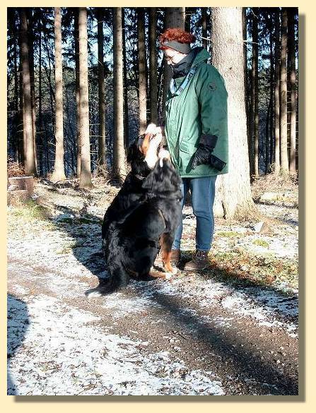 Na ja, ich muss zugeben, dass Frauchen die ganze Zeit mit einem dicken Beutel voller Leckerchen gewunken hat, damit ich mal Ruhe gebe.