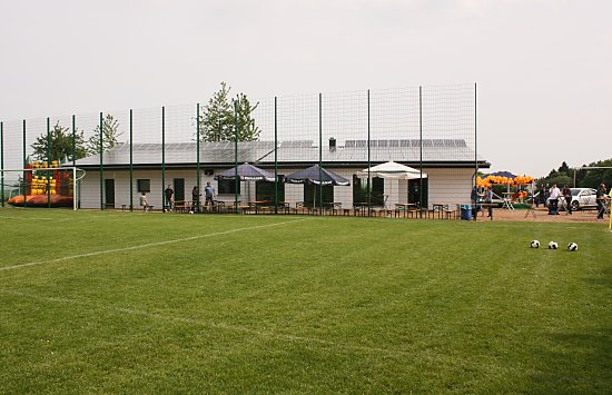 Es stehen nur einige Container auf dem Sportplatz