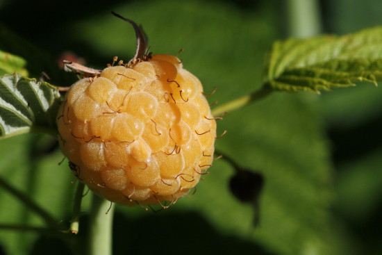 Die Tayberry haben wir gepflanzt. Da es aber ziemlich weit bis hinter die Scheune ist, werden sie nicht (oder nur im Notfall) gegossen. Und die Hühner mögen sie wohl auch. Daher ist die Ernte spärlich...