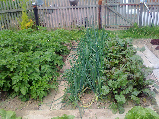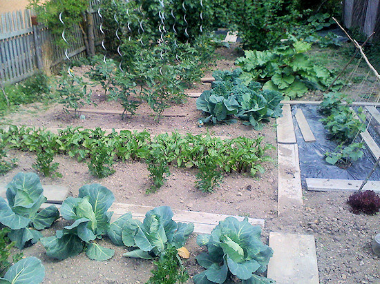 Unser Pflanzgarten 2014. Einfache Bretter dienen als provisorische Wege und Beeteinfassungen.