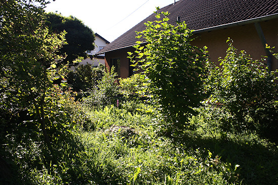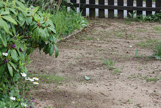 Hier war ein Pflasterweg, der auf beiden Seiten blind endete und ohnehin in schlechtem Zustand war. Also wurde er gleich mit entfernt.