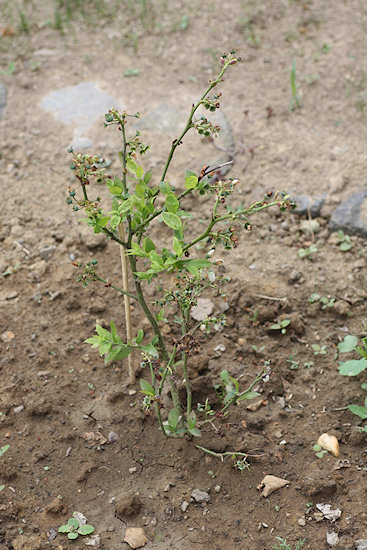 Hier die noch kleine Blaubeere, die bis zu 2 Meter hoch werden soll.