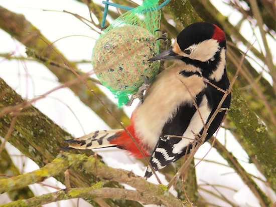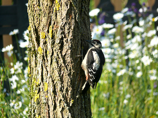 Immer ein gern gesehener Gast, auch wenn er manchmal gegen die Hauswand klopft und nervt: Ein Buntspecht.