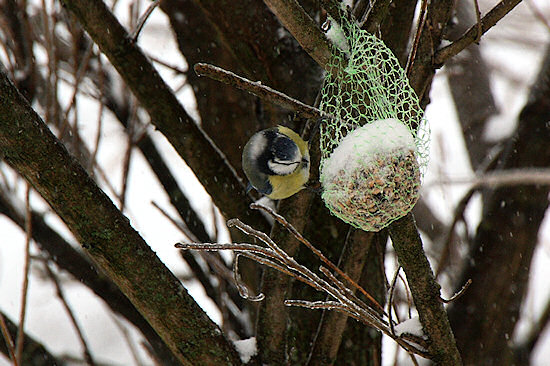 Die Blaumeisen müssen jetzt durchgefüttert werden.