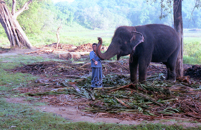 Natürlich werden in der Waldwirtschaft Sri Lankas auch Arbeitselefanten eingesetzt. Diese werden nicht mehr aus dem immer noch vorhandenen (wenn auch kleinen) Wildbestand genommen sondern ausschließlich aus der Zucht. Ausnahme sind lediglich kleine Waisen, die von der Mutter verstoßen wurden oder durch Verletzungen (so gibt es leider wegen des Tamilenkonfliktes öfter Fußverletzungen durch Minen) in das Elefantenwaisenhaus kommen und dort aufgepäppelt werden.