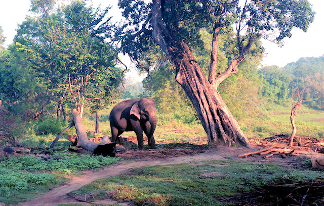 Ein wilder Elefant am Wegesrand. Schon damals eine eher seltene Begegnung.