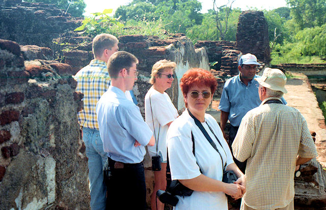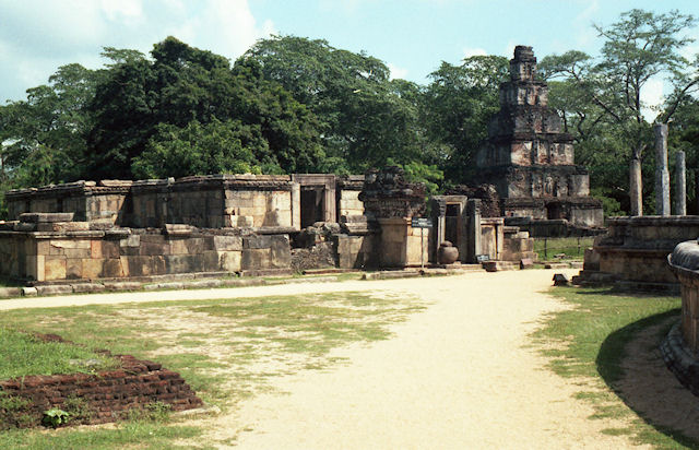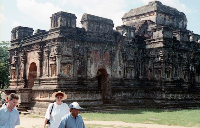Neben einer beeindruckenden, weil äußerst vielfältigen Vegetation, hat Sri Lanka auch eine große Vergangenheit, die sich in vielen Ruinen, nicht nur von Tempeln, zeigt. Im Vordergrund kann man auf dem Schild ein Beispiel für die Landesschrift erkennen.