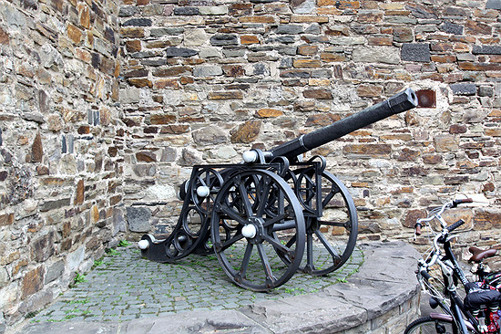 Standesgemäß mit einer Kanone davor.