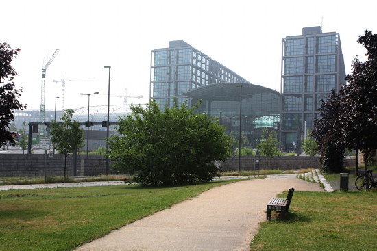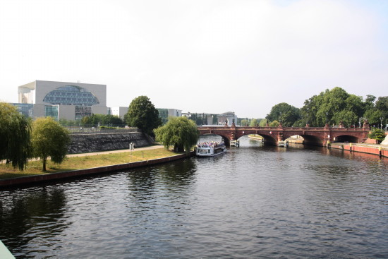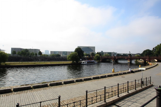 Direkt am Bahnhof fließt die Spree und im Hintergrund kann man schon das Kanzleramt erkennen.