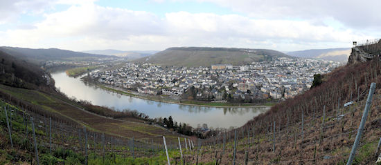 Von hier aus hat man einen wahrlich spektakulären Ausblick über Bernkastel-Kues und die Moselschleife.