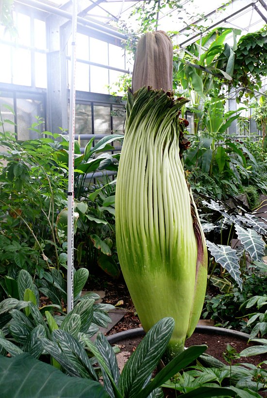 Leider war die Riesenblüte noch nicht geöffnet. So sieht das "Blümchen" aus wie ein Riesenphallus in Chinakohl gehüllt.