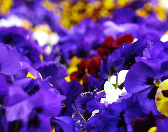 Beet mit Stiefmütterchen. Auf dem Weg zum Gewächshaus gesehen.