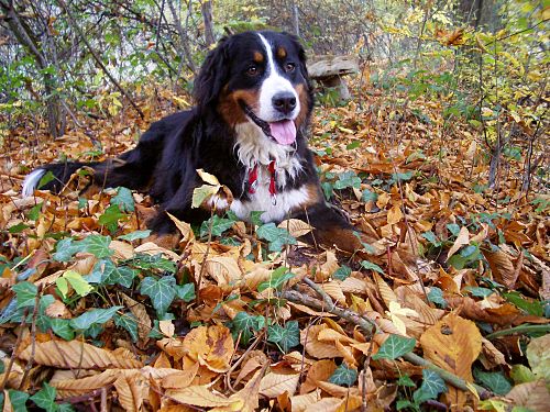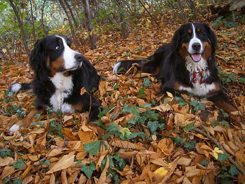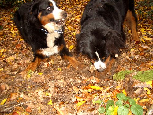 Domino und Ginja schnüffelnd im Laub.