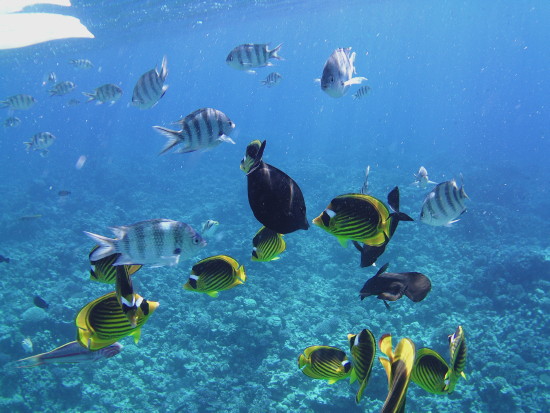 aus gesehen aus. Das war schon während der Bootsfahrt zum Schnorcheln. Da
