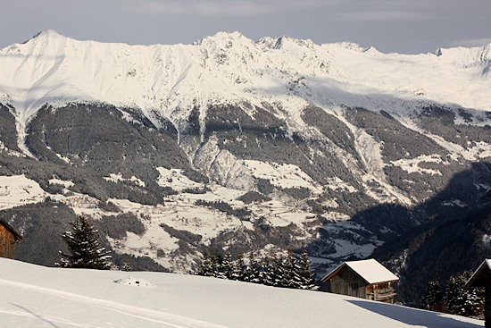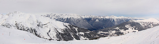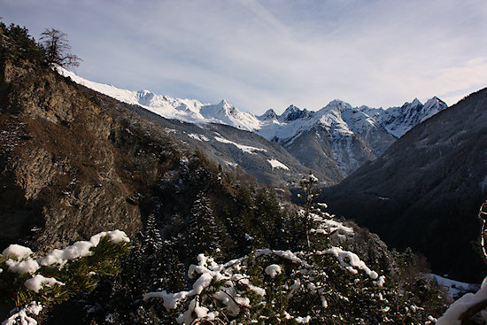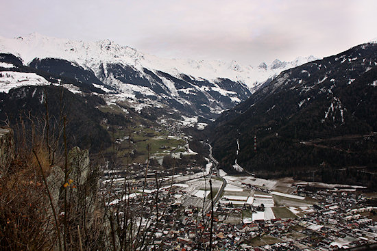 Hier die gleiche Blickrichtung mit wesentlich geringerer Brennweite. im Vordergrund liegen Prutz und Faggen.